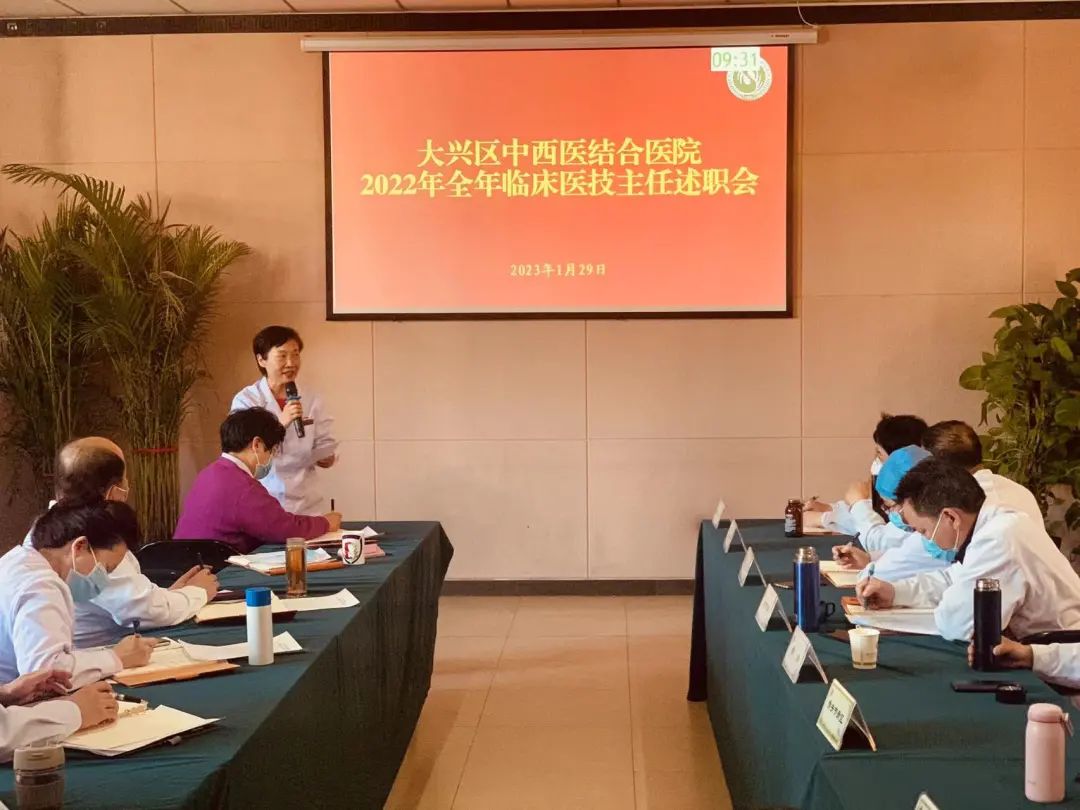新年新迹象,再踏新征程。大兴区中西医结合医院于2023年1月29日召开“2022年临床医技主任述职会”,院领导班子成员及全体中层干部参会,宋炜副院长主持。
