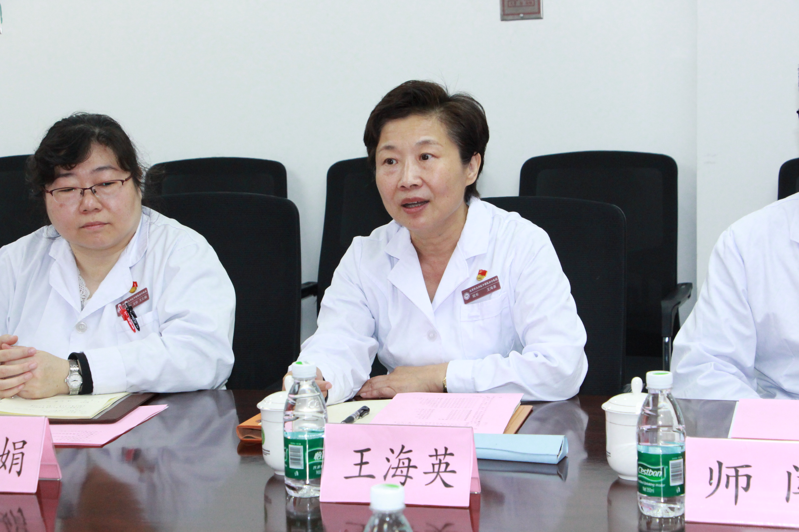 本次交流,霸州市卫生健康局副局长张华军,霸州市中医院党委书记贾建华、副院长姜嘉鑫、院长助理曹雄英、总护士长张宏越、医务科主任孙丽娜、骨科主任牛新亮、绩效办副主任李冬参会,大兴区中西医结合医院院长王海英、副院长师闯、医务科主任王之娟、护理部副主任张雪莲、绩效办副主任张素红、针灸科副主任李翔、骨关节科副主任王宏伟及康复治疗中心副主任谢红志出席,会议由师闯副院长主持。