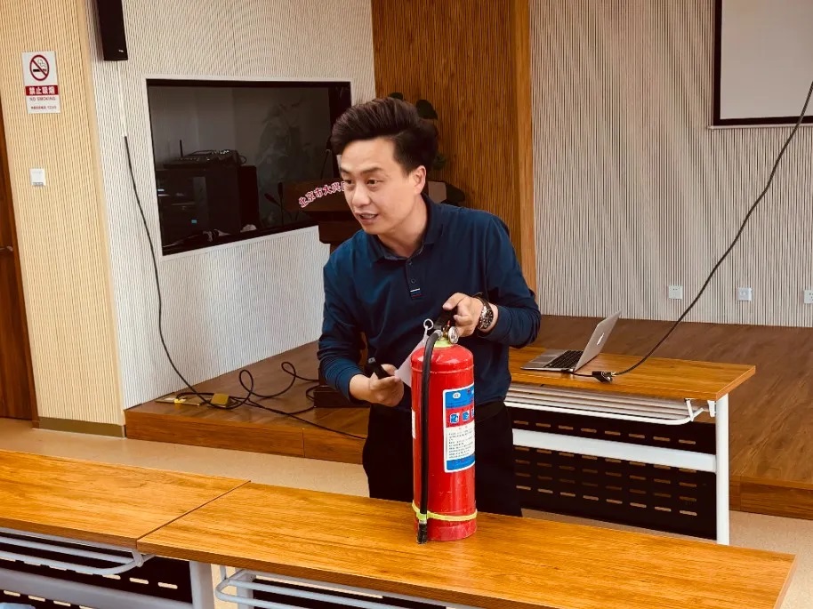 最后,北京平安永泰消防咨询中心讲师王鑫进行授课,他针对针对用电安全、扑救初期火灾、高层建筑自救逃生技巧与自救方法等方面进行了详细讲解,通过案例解析,教学灭火器材的使用方法及自救逃生技能。深入浅出的话语发人深省,处理火情的方法学以致用,受到大家的一致好评。