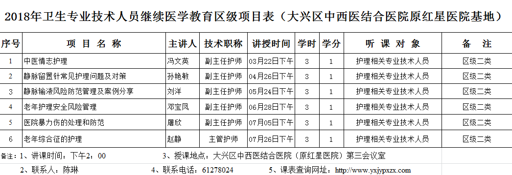 北京市大兴区中西医结合医院2018年第三次区级护理继续教育课程时间:周四(5月24号14点-17点)