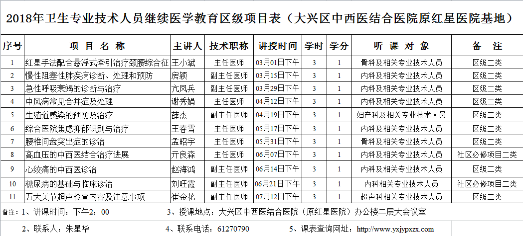 北京市大兴区中西医结合医院2018年第六次区级护理继续教育课程