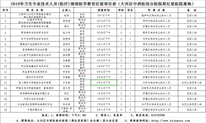 附:北京市大兴区中西医结合医院2019年继续教育课程表