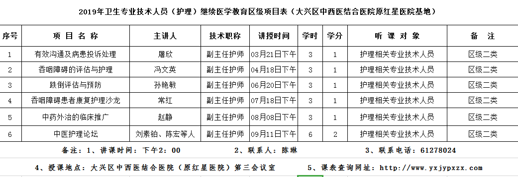 附:北京市大兴区中西医结合医院2019年继续教育课程表