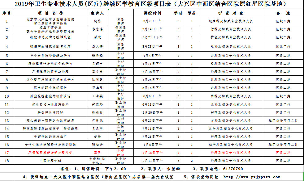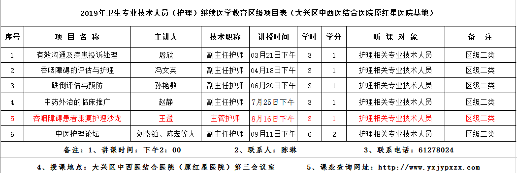 北京市大兴区中西医结合医院2019年第五次护理继续教育课程