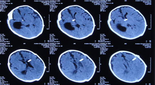 入院当天行脑室外引流术,引流的脑脊液淡黄色,细菌培养为无细菌,经引流第34天查头CT时,发现:右侧颞角孤立性扩大,其余脑室系统明显缩小。