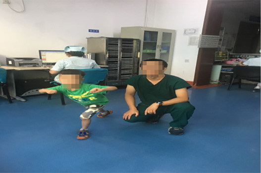 治疗第42天行右侧侧脑室颞角引流术,第47天复查头CT: 右侧颞角及其余脑室系统大小正常,第63天行双侧脑室分流术,第74天出院,头围减小至39cm(活泼好动,恢复正常。