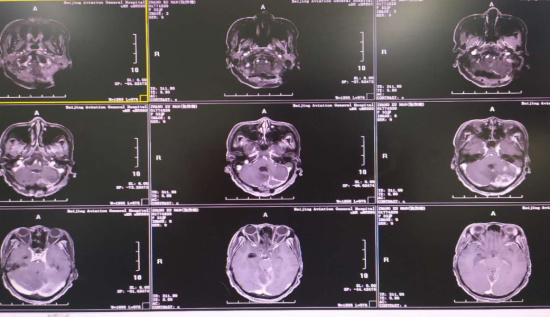 核磁增强:小脑-脑干多发脓肿、感染性血肿