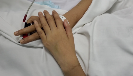 第二天,患者意识也明显改善,有了明确的遵嘱动作!能够按照指令闭眼、睁眼、伸手,而这也是清醒最关键的指征,也是她现在及未来漫长的恢复过程中,最艰难的一关。