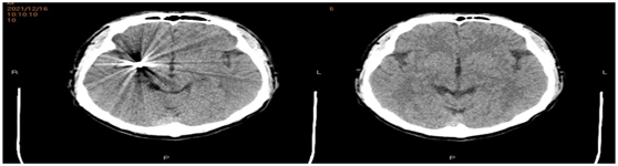 患者术后病情恢复也一样的顺利,一周后复查头颅CT,颅内出血已经完全吸收(见下图),患者选择出院回家修养。