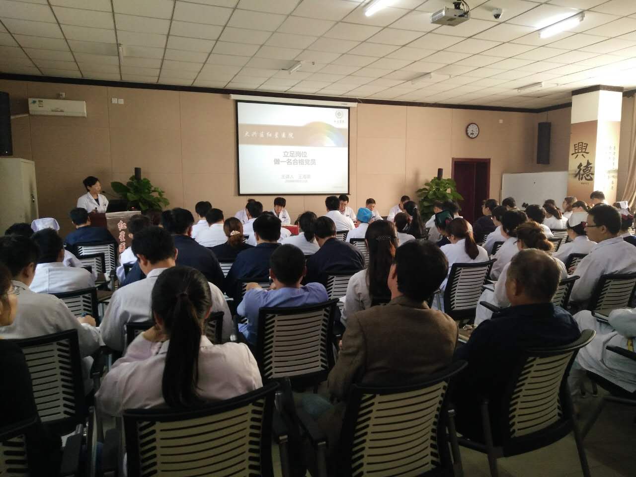 党课以“立足岗位,做一名合格党员”为主题,分为“坚定信念,深入学习”、“服务群众,勇于奉献”、“提升意识,认真践行”三部分。王院长结合我院在“两学一做”学习教育活动中所做的实际工作以及取得的成效,深入浅出的为大家讲述了如何学做结合,学以致用,将学习内容与工作相结合,立足岗位,做一名合格党员。