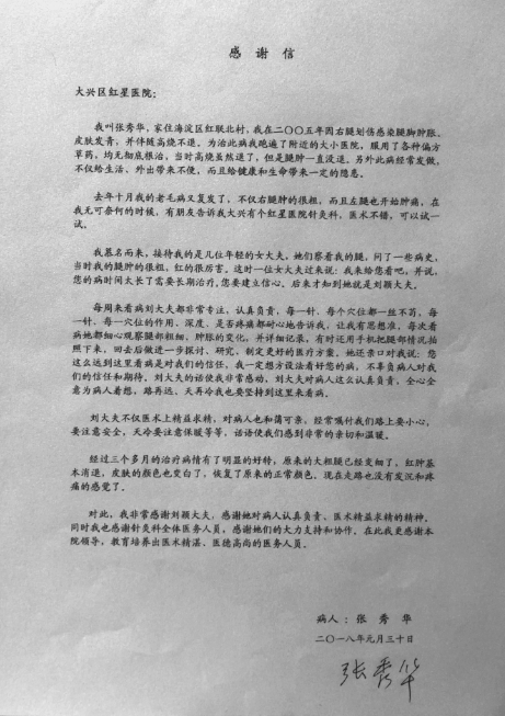 针灸科感谢信一