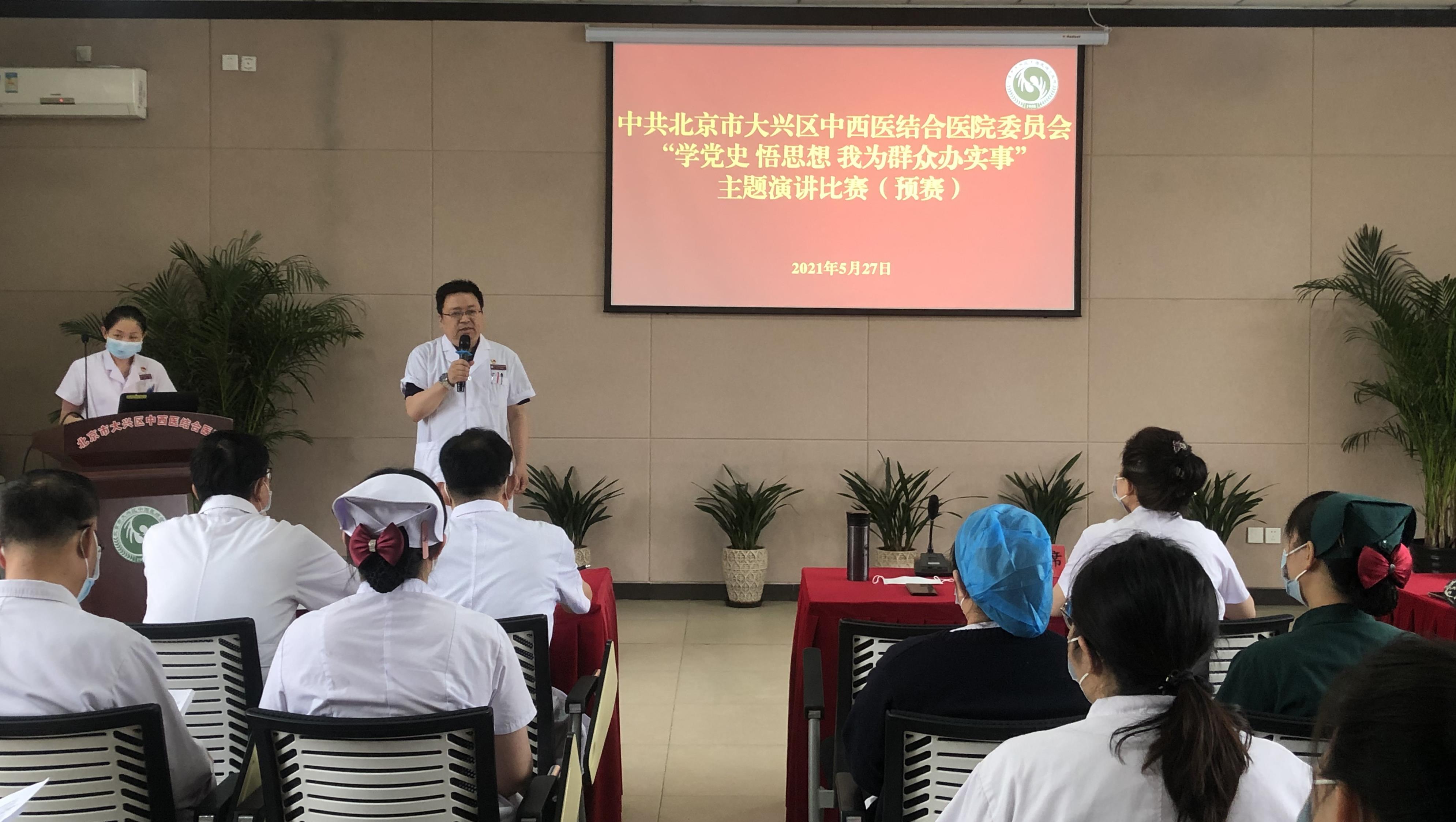 为从党的百年伟大奋斗历程中汲取继续前进的智慧和力量,深入学习贯彻习近平新时代中国特色社会主义思想,巩固深化“不忘初心、牢记使命”主题教育成果,弘扬先进事迹,宣传优秀典型,进一步夯实患者就医体验工作,牢固树立“以病人为中心”的服务理念,推进医院可持续健康发展,提升医院服务品质。2021年5月27日下午,“学党史 悟思想 我为群众办实事”主题演讲比赛初赛在我院大会议室举行。来自各支部、各科室的35名选手参赛。院