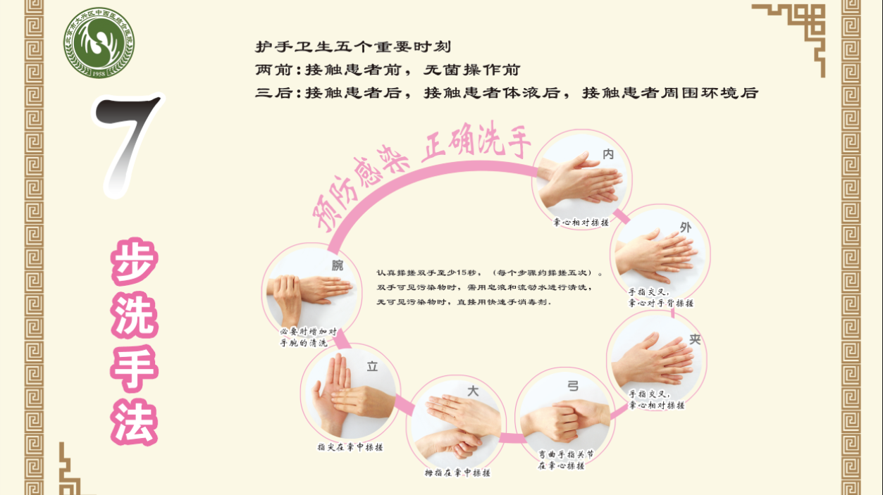 洗手究竟有多重要?大多数人一天中常常会无意识的多次触摸鼻子和嘴巴,细菌通常就会这样侵入人体,世界卫生组织在新型冠状病毒防护建议中,第一条就是洗手。清洁卫生,勤洗手可预防疾病的发生,您洗手的方法正确吗?您会洗手吗?首先要掌握好洗手时机:饭前饭后、戴口罩、触摸过公共区域的扶手、门柄、电梯按钮、触摸眼、口、鼻前和如厕、打喷嚏、咳嗽、接触过泪液、鼻涕、痰液和唾液、接触钱币后及从外面回家后都要认真仔细洗手